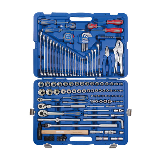 Comprehensive 143 pieces socket and tool set featuring 1/4", 3/8", and 1/2" drive sizes. Designed for a wide range of mechanical, automotive, and ...