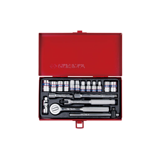 View full details6-22MM. 20 Pieces 3/8" Dr. socket set. Durable and Easy to Use. Metal case size(mm): 372 x 153 x 40.